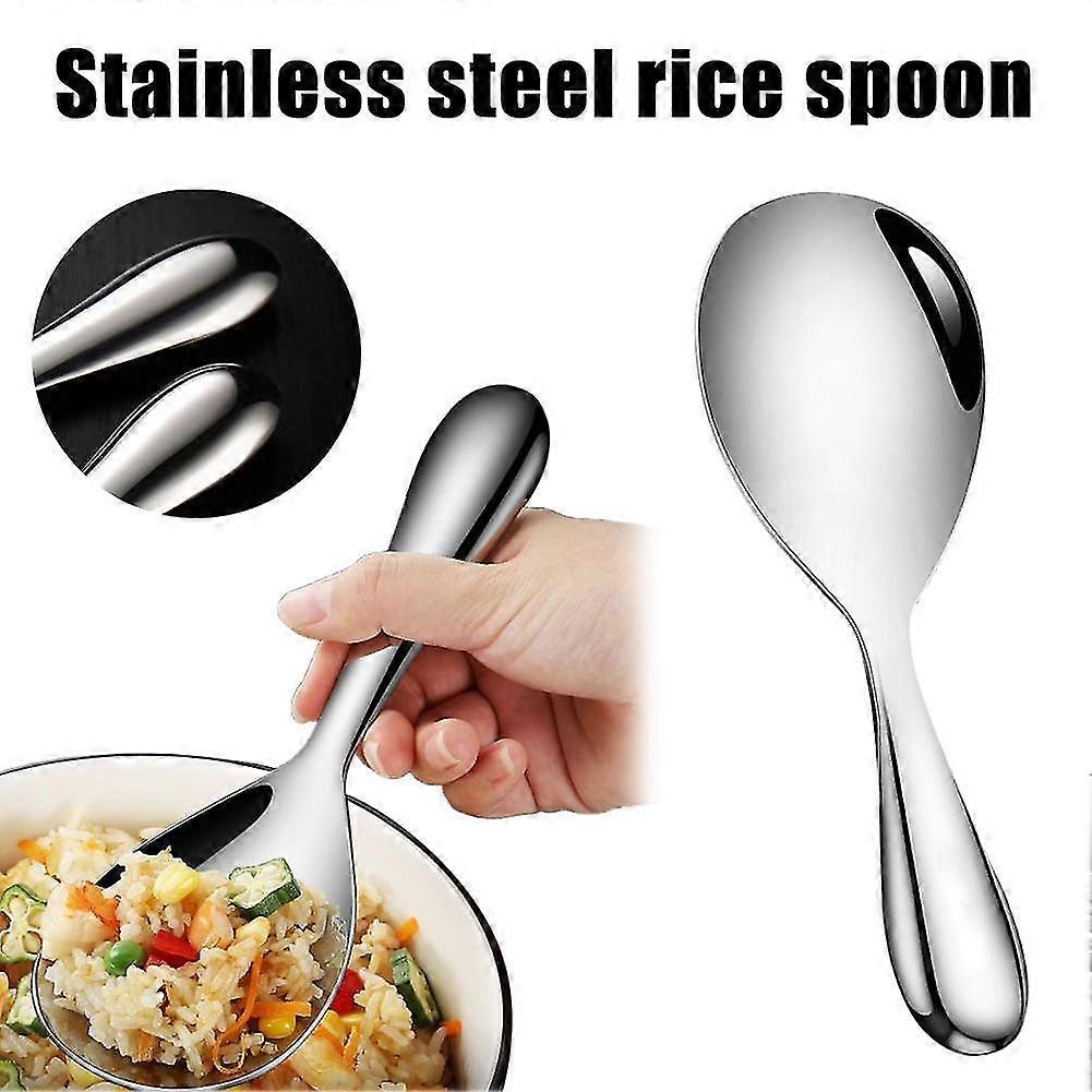 Description:Usage: Rice spoon, vegetable spoonMaterial: stainless steelSize: 20.5 * 7cm/8.1 * 2.8inchFeature:Strong durability: The stainless steel rice spoon is made of high-quality stainless steel, which has excellent corrosion resistance and wear resistance, is not easy to rust or deform, and will not produce scratches after long-term use.Reasonable design: The stainless steel rice spoon is designed reasonably, with a comfortable handle design and a spoon head that is suitable for the taste, making it comfortable to use and easy to stir and eat.Multifunctional: Stainless steel rice spoons can not only be used to scoop rice, but also for stirring dishes, stir frying ingredients, and other kitchen operations. They are commonly used tools in the kitchen.Beautiful and Strong durability: The stainless steel rice spoon has a simple and elegant appearance, is smooth and bright, easy to clean and maintain, is not easy to change color, maintains brightness for a long time, and has a long service life.Environmental sustainability: The stainless steel rice spoon material is recyclable and environmentally friendly, making it a sustainable green lifestyle choice.Lightweight and Portable: The stainless steel rice spoon is lightweight, easy to carry, and can be used anytime and anywhere, suitable for various occasions such as family dining and outdoor picnics.Attention:Due to manual measurement, there may be a 1-3mm error in product dimensions.The product includes:1*Stainless steel rice spoon