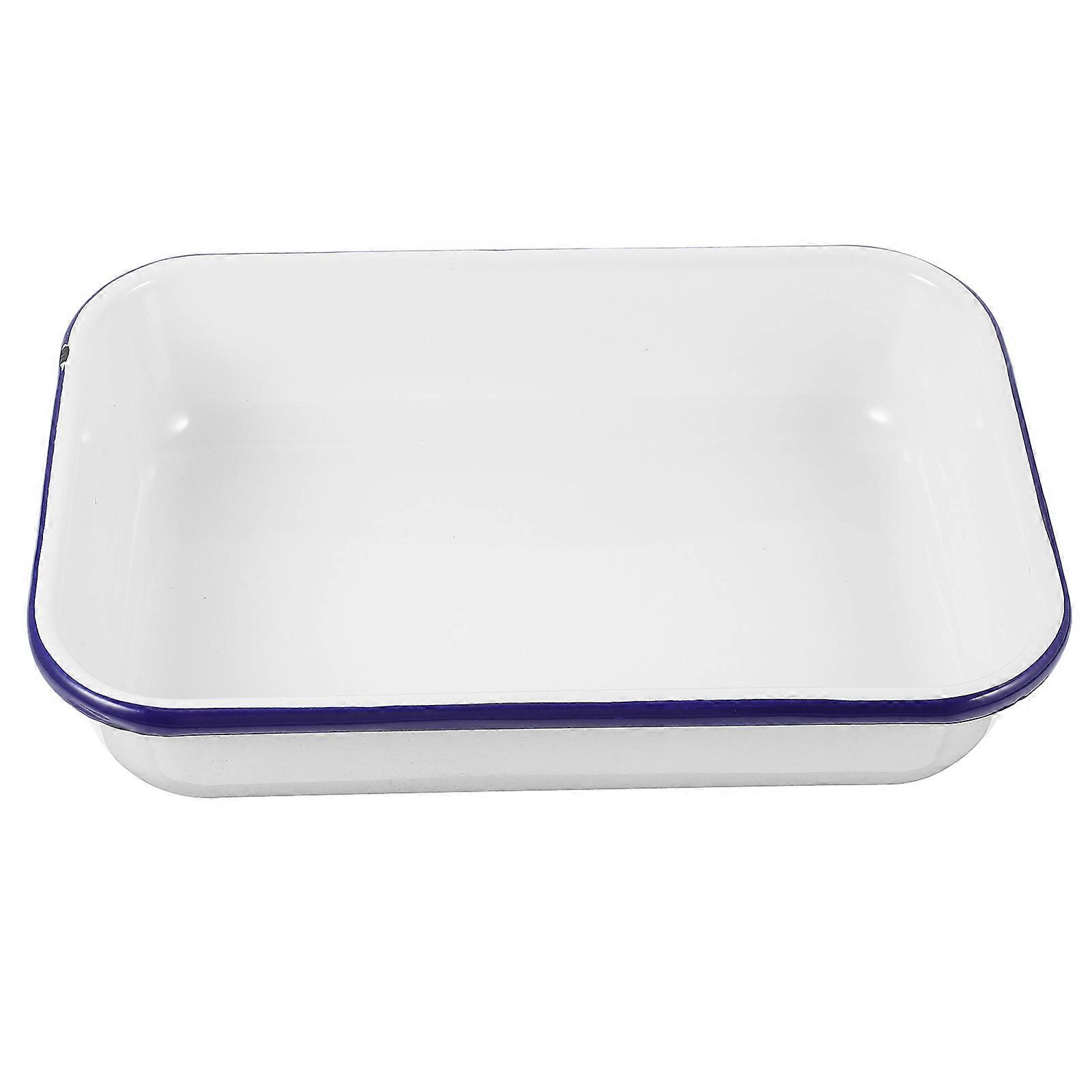 Thickened White Enamel Food Storage Pan Heat Resistant Baking Tray Household Restaurant Use Smooth Surface Easy Cleaning