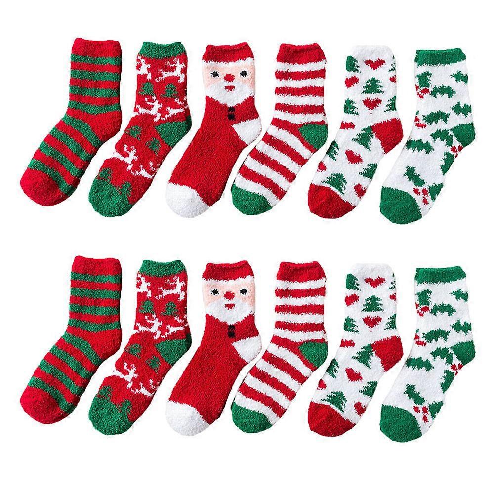 Thick Warm Sleeping Socks Assorted Color Synthetic Material for Home Use Christmas Gift 6 Pairs