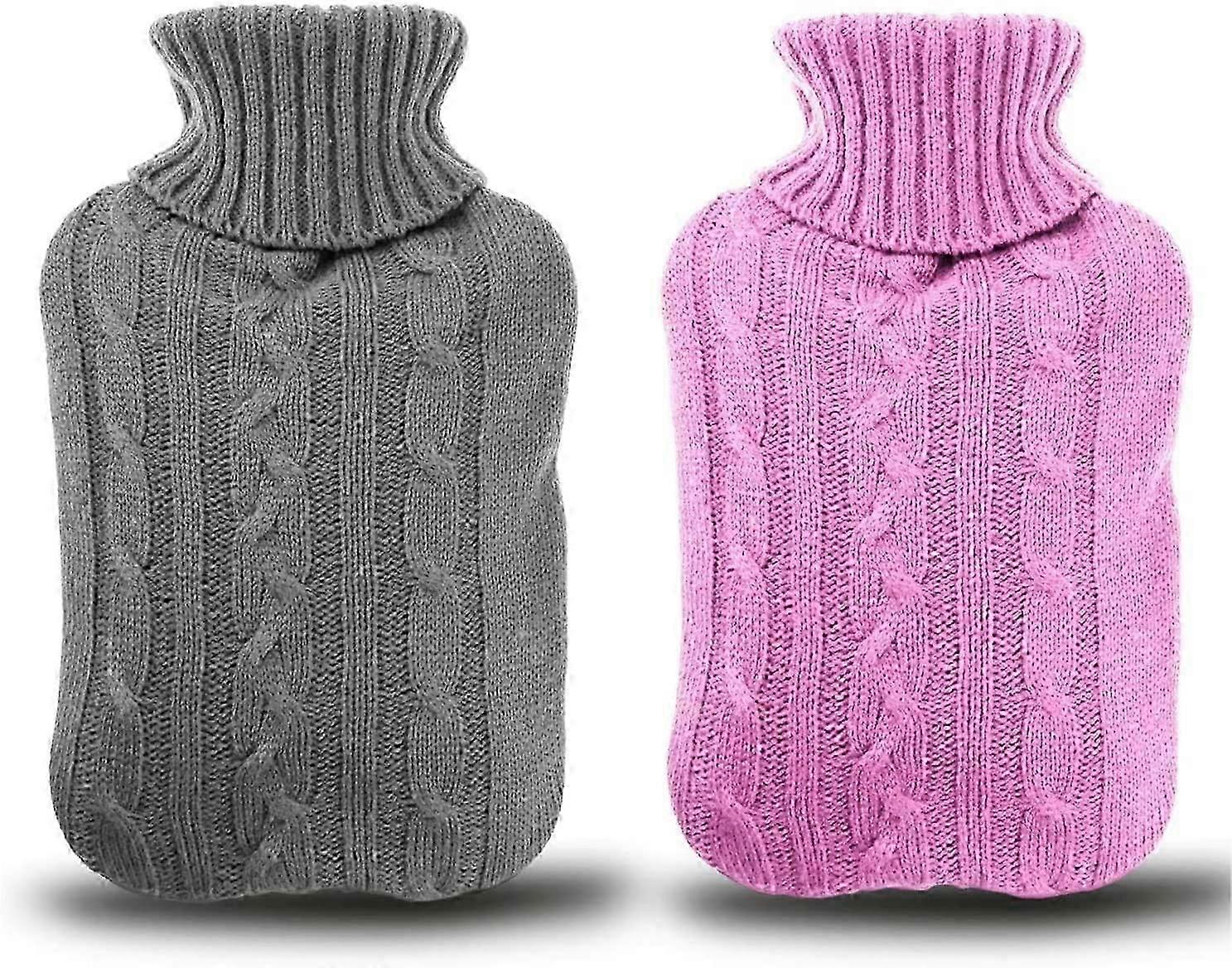 Bottle2 hot water bottle with knit lids, large capacity 2L Excellent help to keep warm, retains heat longer than traditional rubber bottles. Made of advanced thermoplastic PVC, without odor and recyclable. A screw cap ensures that the bottle does not leak. Safe and easy to fill and use. A wide mouth with a plastic cap, which can easily pour hot water into the bottle and prevent water from spilling TextureFine texture makes skin contact safer and more comfortable . Comes with a warm knitted lid to prevent the hot bottle from coming into direct contact with your skin. PERFECT GIFT FOR HIM OR HER: Gifort hot water bottles are the perfect gift for Christmas, birthday or any other occasion special. With the size of 33cm*20cm, it is suitable for all adults and children. But please note: When filling, hold the neck of the bottle in an upright position, pour slowly and carefully to avoid hot water splashing back.