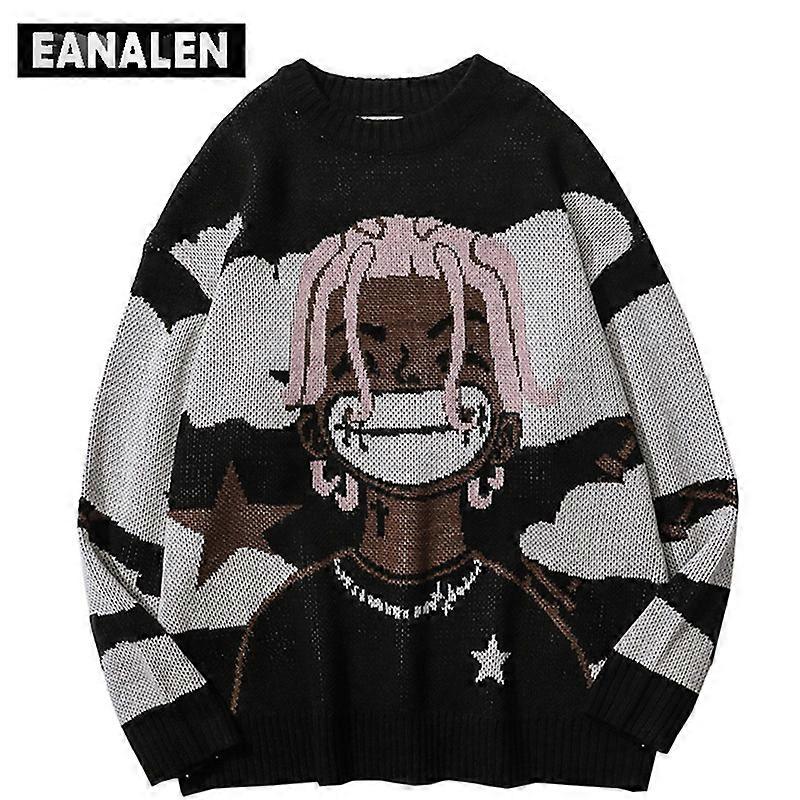 Harajuku vintage cartoon anime knitted sweater men winter oversized men's rock hip hop rap pullover women jumper ugly sweater