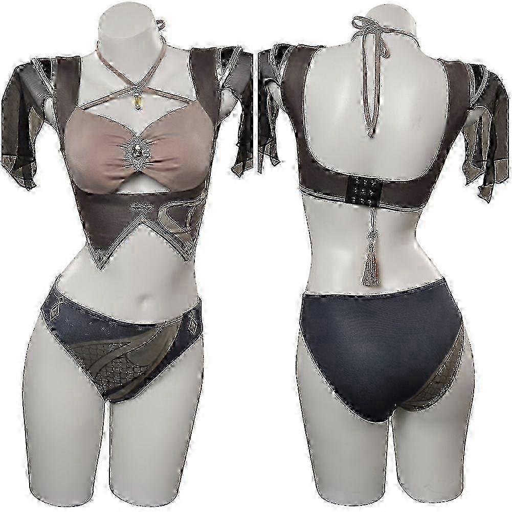 Genshin Impact Lumine Swimsuit Cosplay Costume Dress Women Girls Swimwear Halloween Carnival Party Disguise Summer Swimming Suit