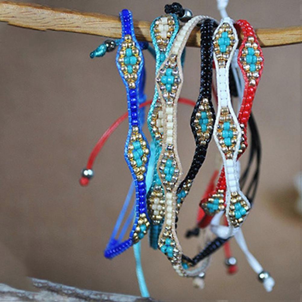 Friendship Bracelet Handweave Retro Rice Beads Bohemian Wrist Jewelry Decoration Blue 25x1cm 1Set