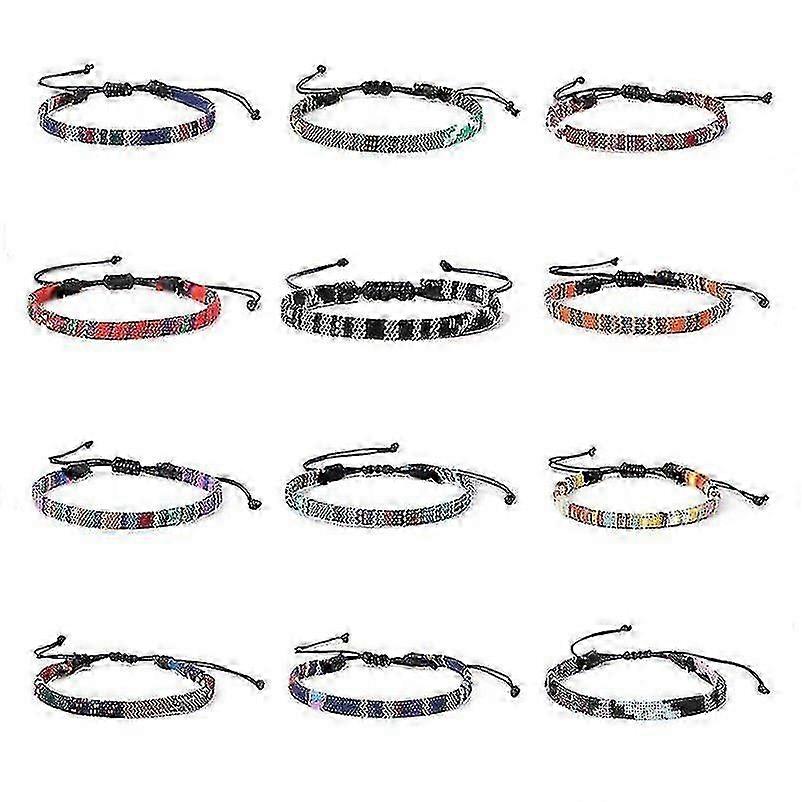 12 Pcs Friendship Braided Bracelets, Handmade Braided Adjustable Colorful Bracelets(c-g-3)