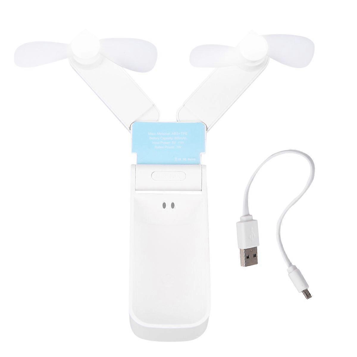Double-headed USB Fan Table Desktop Electric Fan USB Rechargeable Air Cooler Outdoor Travel Summer Mini Folding Cooling Fans (White)