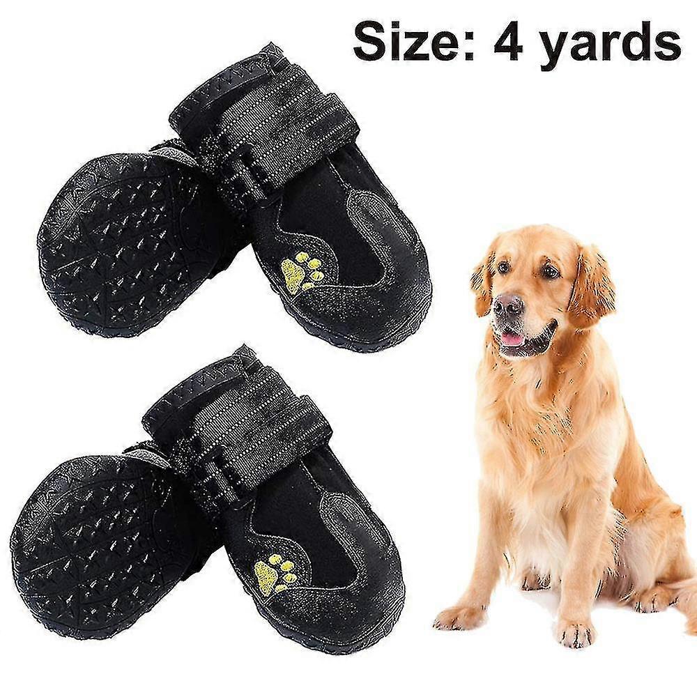 Description Product DescriptionMaterial: reflective stripe + rubber soleColor: khakiblack, redSize 4: 5*6.5 cmSize 5: 5.7 * 7 cmSize 6 Size: 6.4 * 7.5 cmSize 6.4 * 7.5 cm e 7 Size: 7 * 8 cmQuantity: 4 pieces Package Content: 4 * Non-slip, waterproof and wearable The paw wear can protect against sharp thorns and hot pavement. Help dogs get up more easily on hardwood floors.Non-slip sole with 3M reflective straps provides stability and traction, helping your pet walk safely at night.Waterproof four-sided stretch fabric, Leather. Soft on the paws.Dog shoes are firmly attached by straps that are long and adjustable. Please try to tighten the straps after wearing, which can effectively prevent the shoes from falling off the dogs claws.