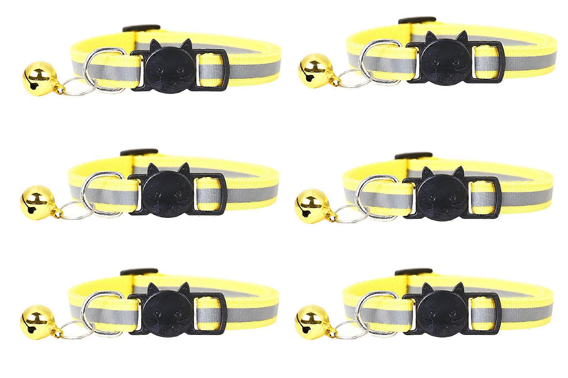 Reflective Design Adjustable Cat Collars 20-32cm More Safety Quick Release Safety Buckle with Bell(Yellow-6pcs)