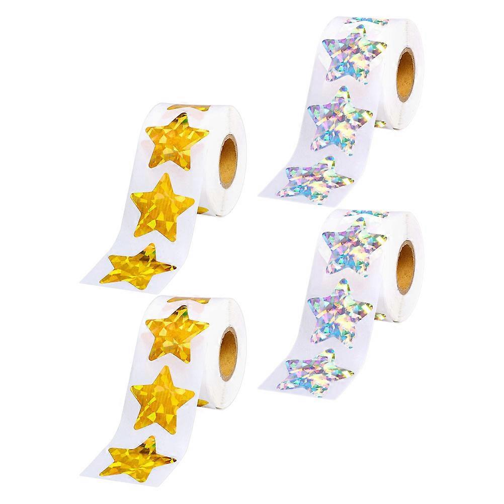 Reflective Pentagram Star Stickers, 4 Rolls Adhesive Decorative Stickers for Crafts, Scrapbooking, Classroom Rewards
