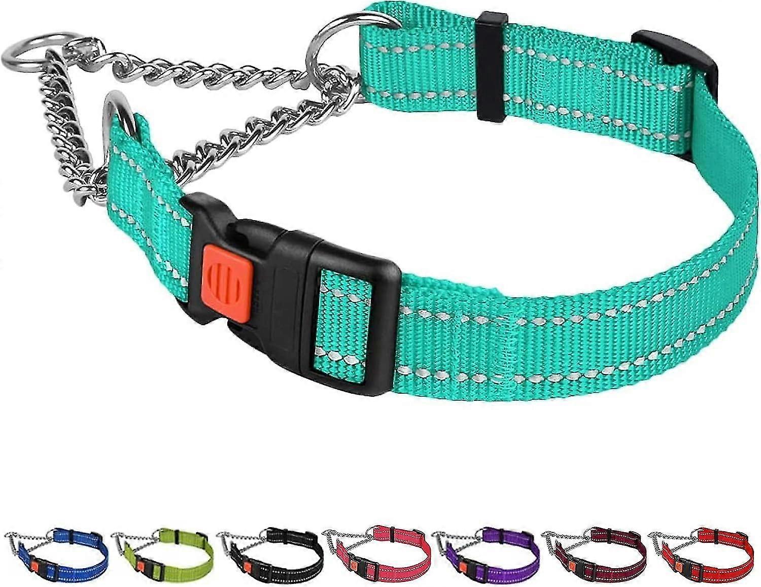 Reflective Dog Collar Martingale Collars Side Release Buckle Chain Training Adjustable Pet Collars (s, Neck Size 12"-15", Mint Green)