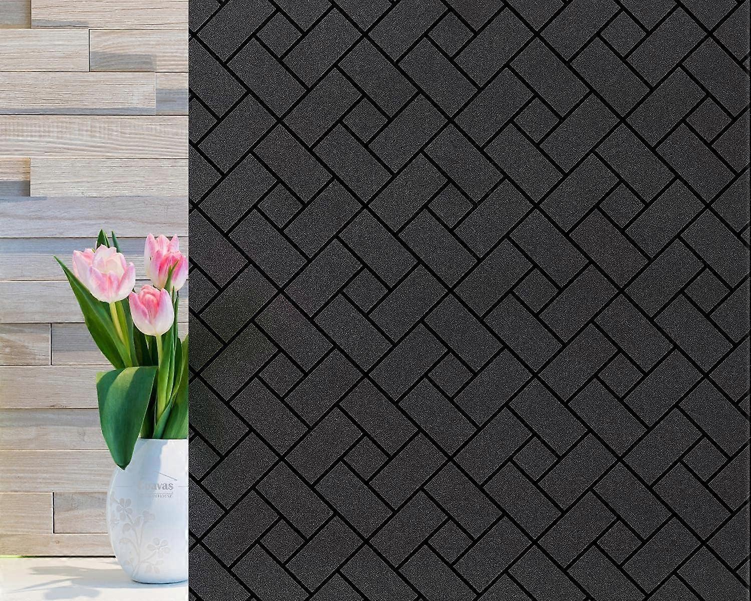Reflective Window Film Blackout Window Film, Non-adhesive Static Cling Window Film Block 95 UV Rays, Frosted Plaid Window Film Opaque Decoration for H