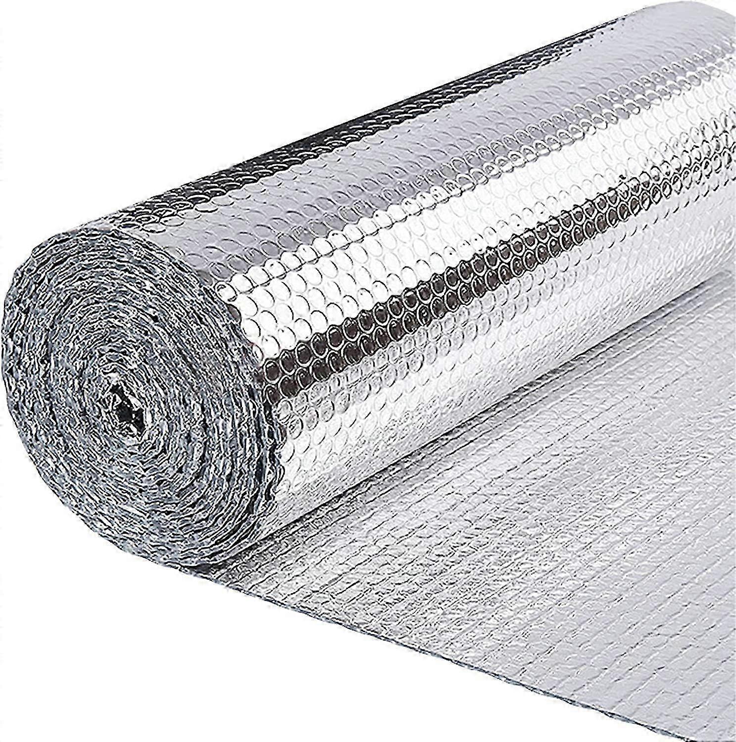 1. REFLECTIVE ALUMINUM INSULATION SHEET: Sturdy and lightweight, Easy to cut, and can cater to all your big or small area insulation needs. 2. HIGH REFLECTIVITY: Reflect 99.7% of radiant energy heat transfer or sunlight. 3. PREMIUM MATERIAL: Durable Waterproof Weatherproof Metalized Double Sided Aluminum Eco-friendly Reflective insulated sheet. 3mm (1/8 inch) bubble core, sun protection, waterproof, and heat insulation. 4. Heat/Cold PROTECTION: Double aluminum foil, good sealing performance, avoids heat loss, stops winter cold, keeps warm in winter and stays cool in summer, is soundproof, and protects privacy.