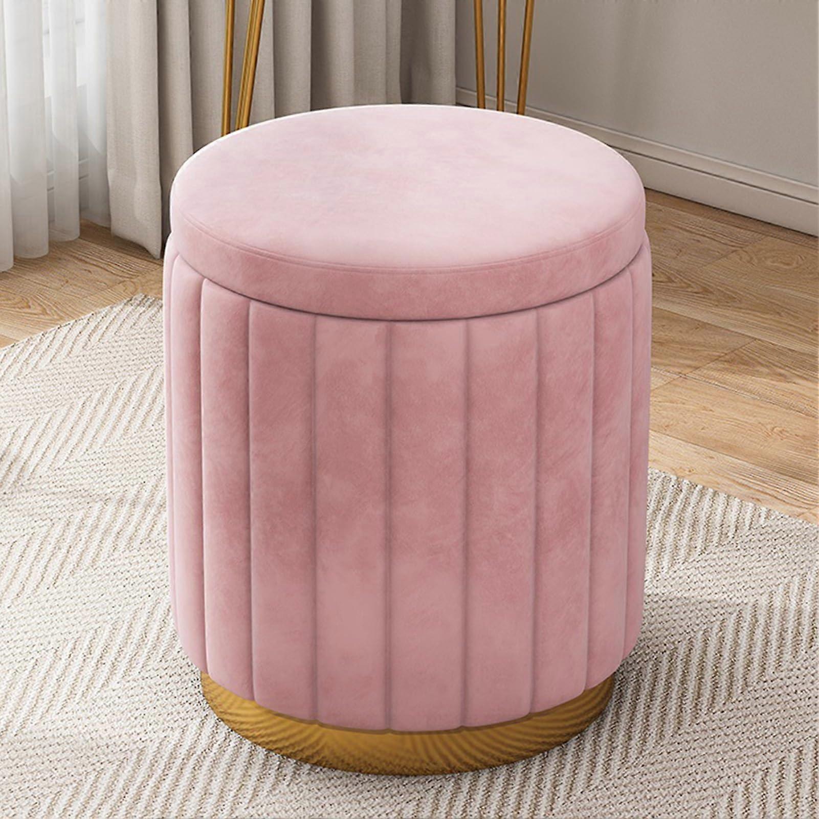 Round Vanity Stool Chair with Storage Space Velvet Upholstered Seat for Dressing Table, Bedroom, Living Room Footrest Footstool Ottoman