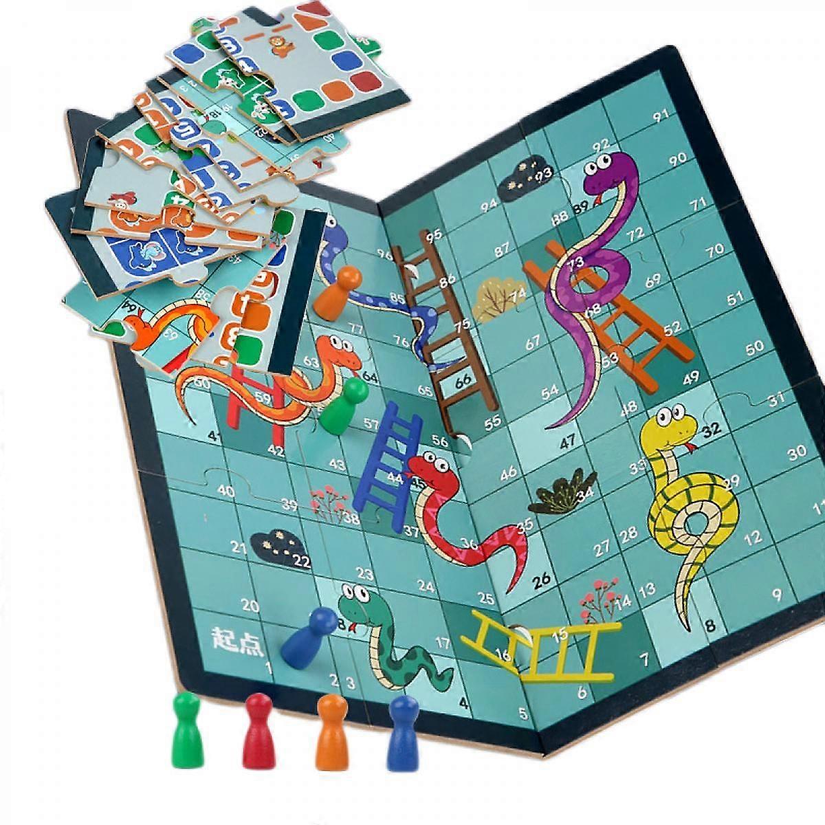 Magnetic snakes and ladders game with storage box, foldable and lightweight design, gift for kids and adults.