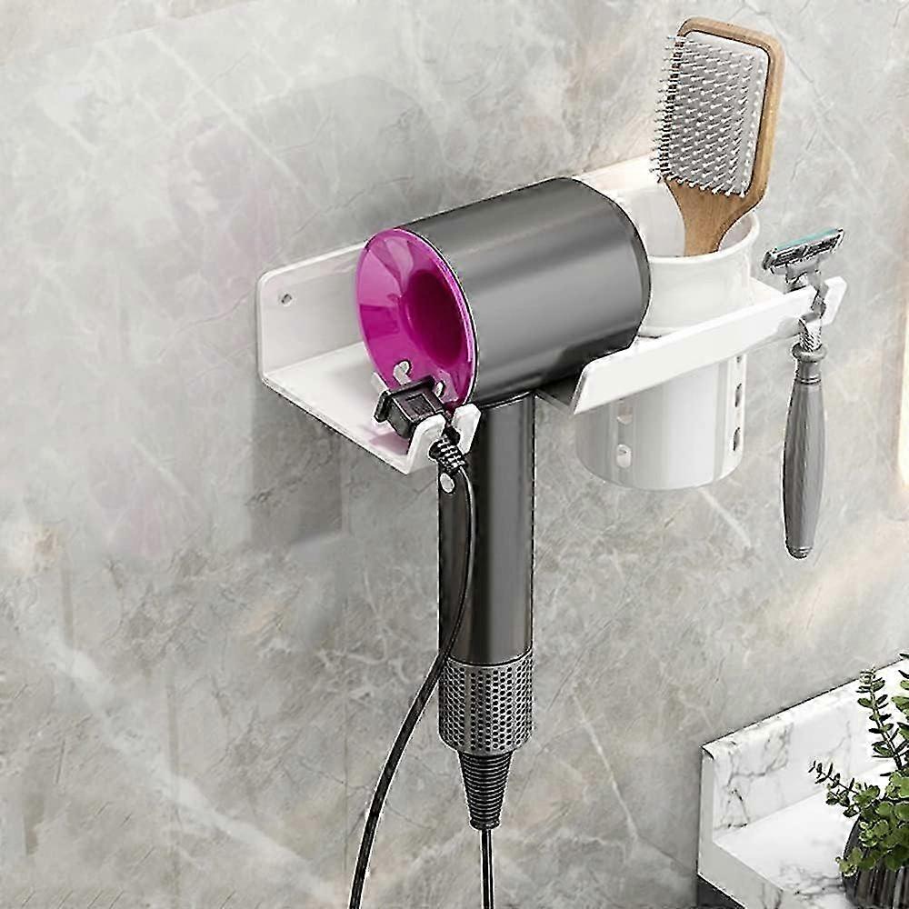 Wall Mount for Hair Dryer with Storage Box, Universal Metal Holder for Hair Tools (White)