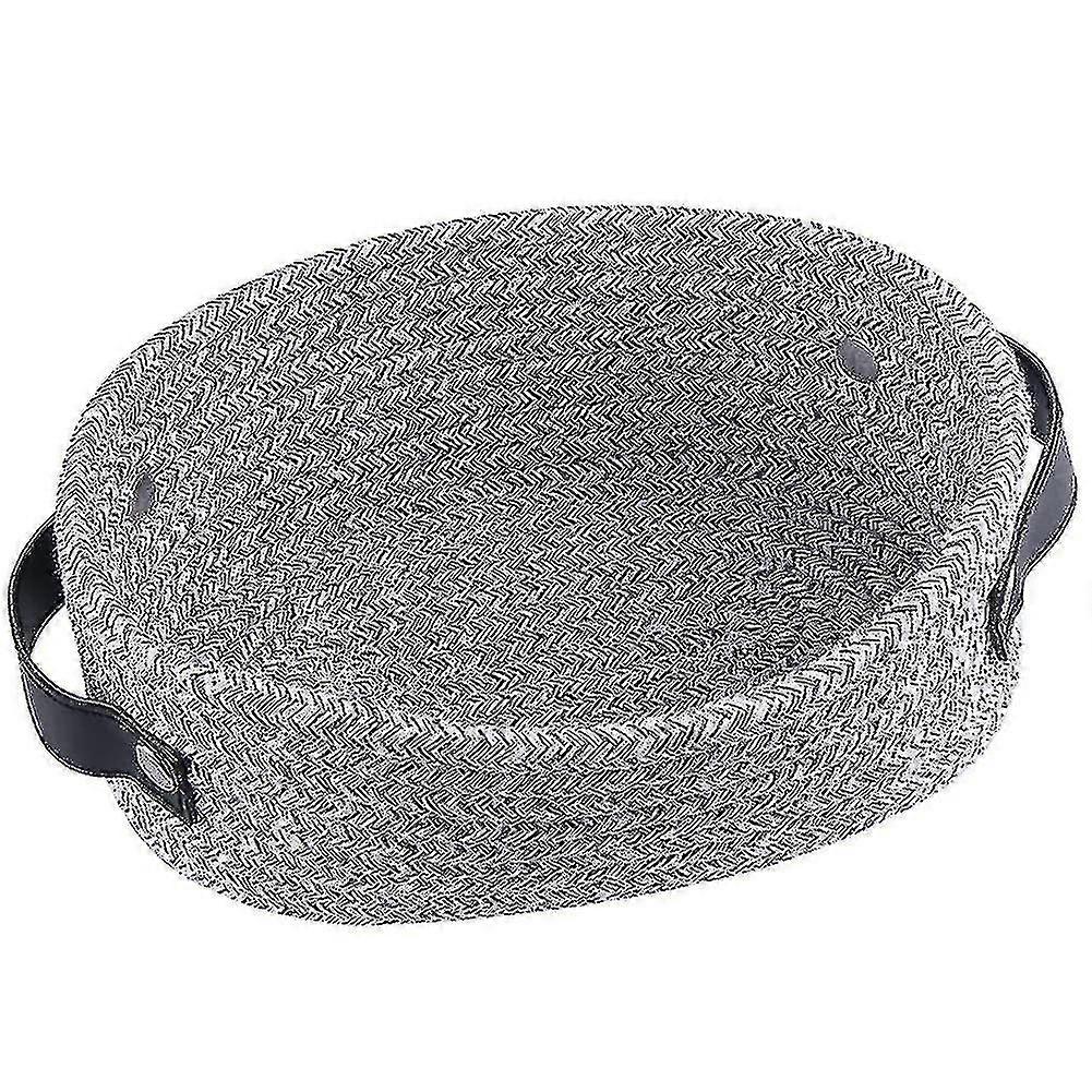 Small Woven Basket For Storage Oval Rope Coil Baskets With Handle Mini Cotton Basket Little Organizer Bins Hamper Nursery Room For Kids Baby Dog Toy G