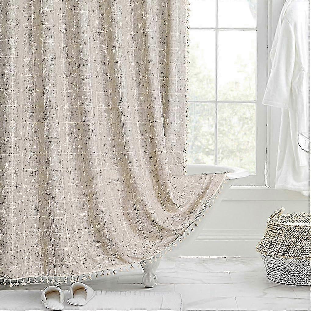 Modern Bath Curtains Easy To Install And Waterproof Polyester Shower Curtains For Bathroom Curtain For Bathroom, large plaid beige
