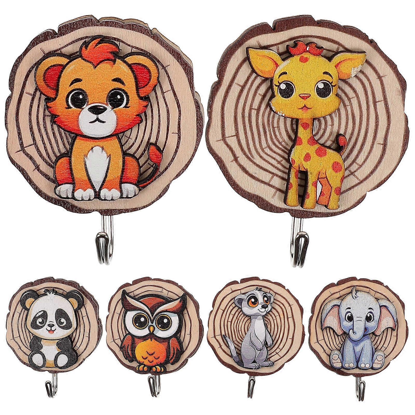 Mounted Wall Hook Kids Animal Coat Rack Organizing Adhesive Installation Assorted Color 7.50X6.00X2.10CM 6Pack