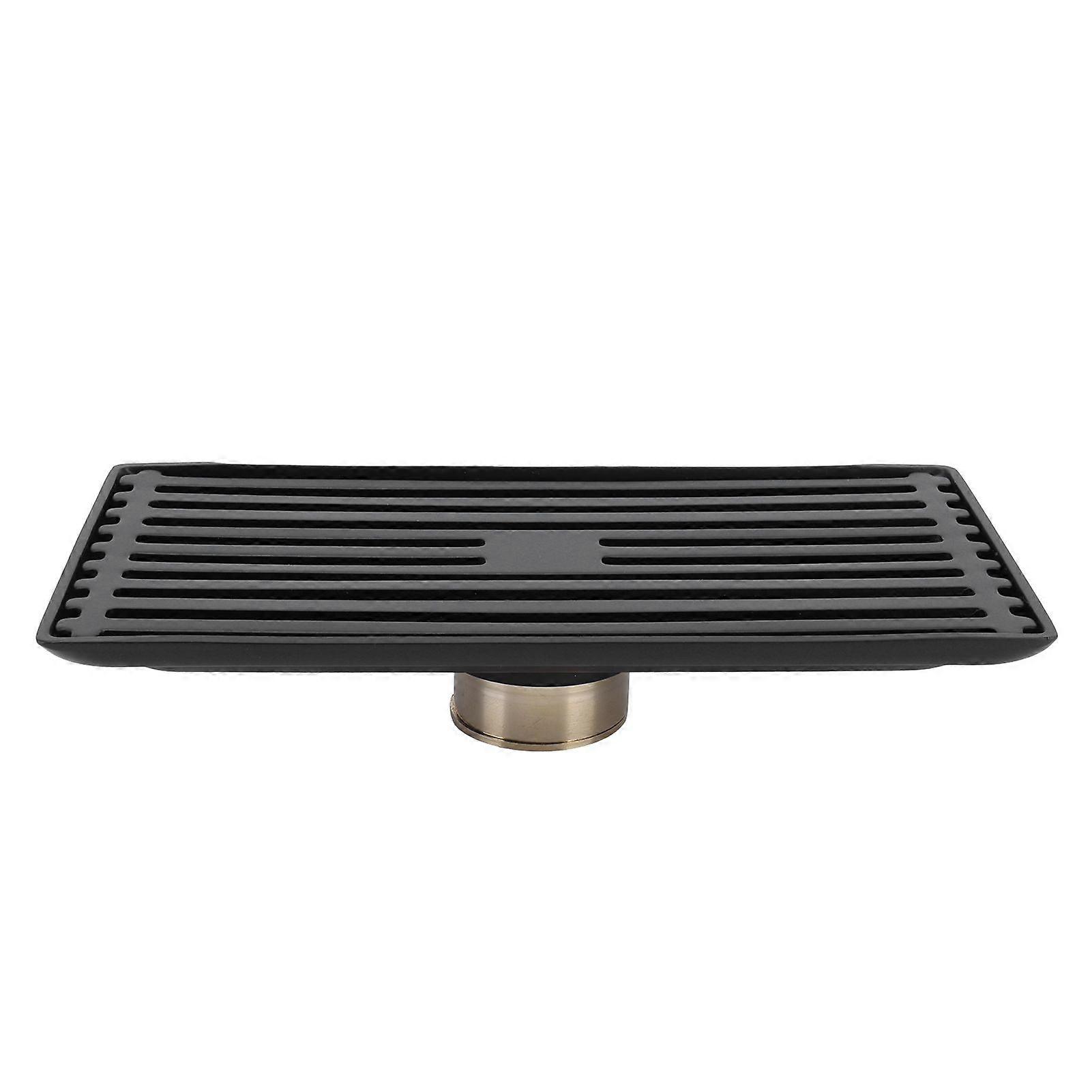 Black Floor Drain with Removable Cover Stainless Steel Bathroom Kitchen Accessory 10x20cm