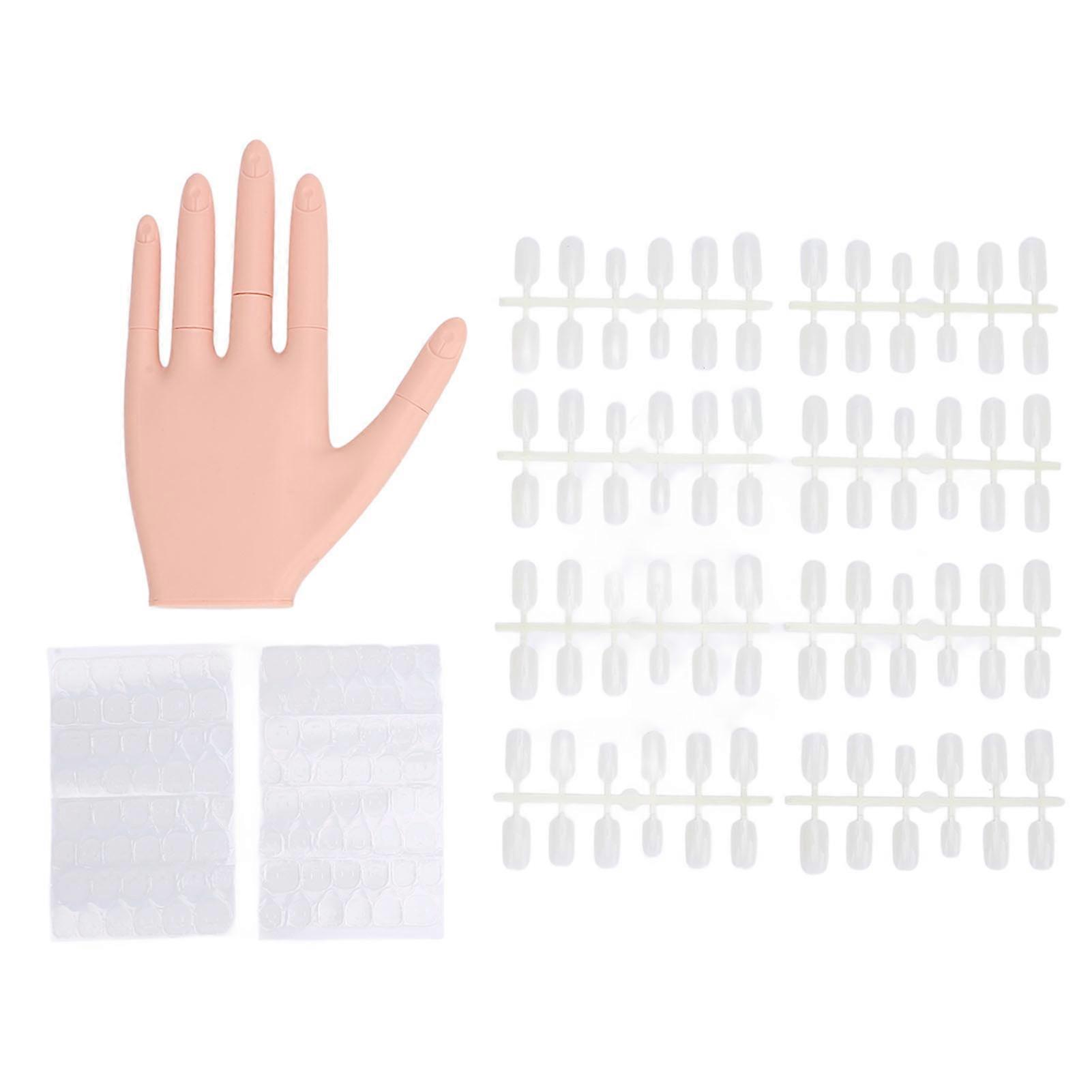 Practice Hand for Acrylic Nails with Removable Joints and Embedded Nail Slots, Thickened Nail Bed Manicure Training Hand with Nail Tips and Stickers
