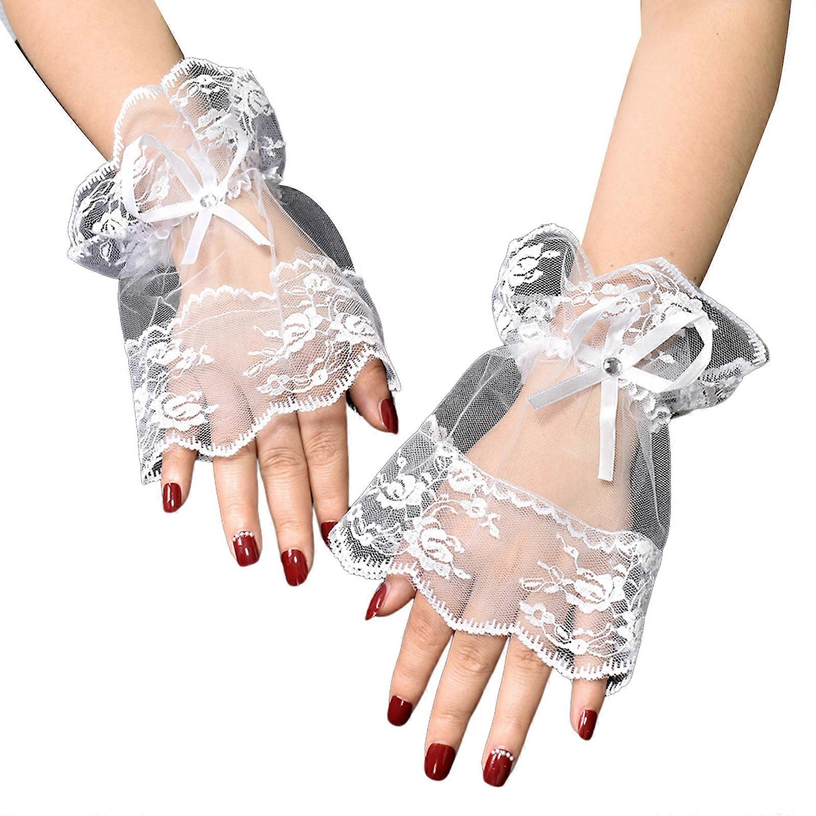 Removable Shirt Sheer Decorative Cuffs Girls See-Through Lace Wristband Decorative Sleeves Woman Sweater Clothing White
