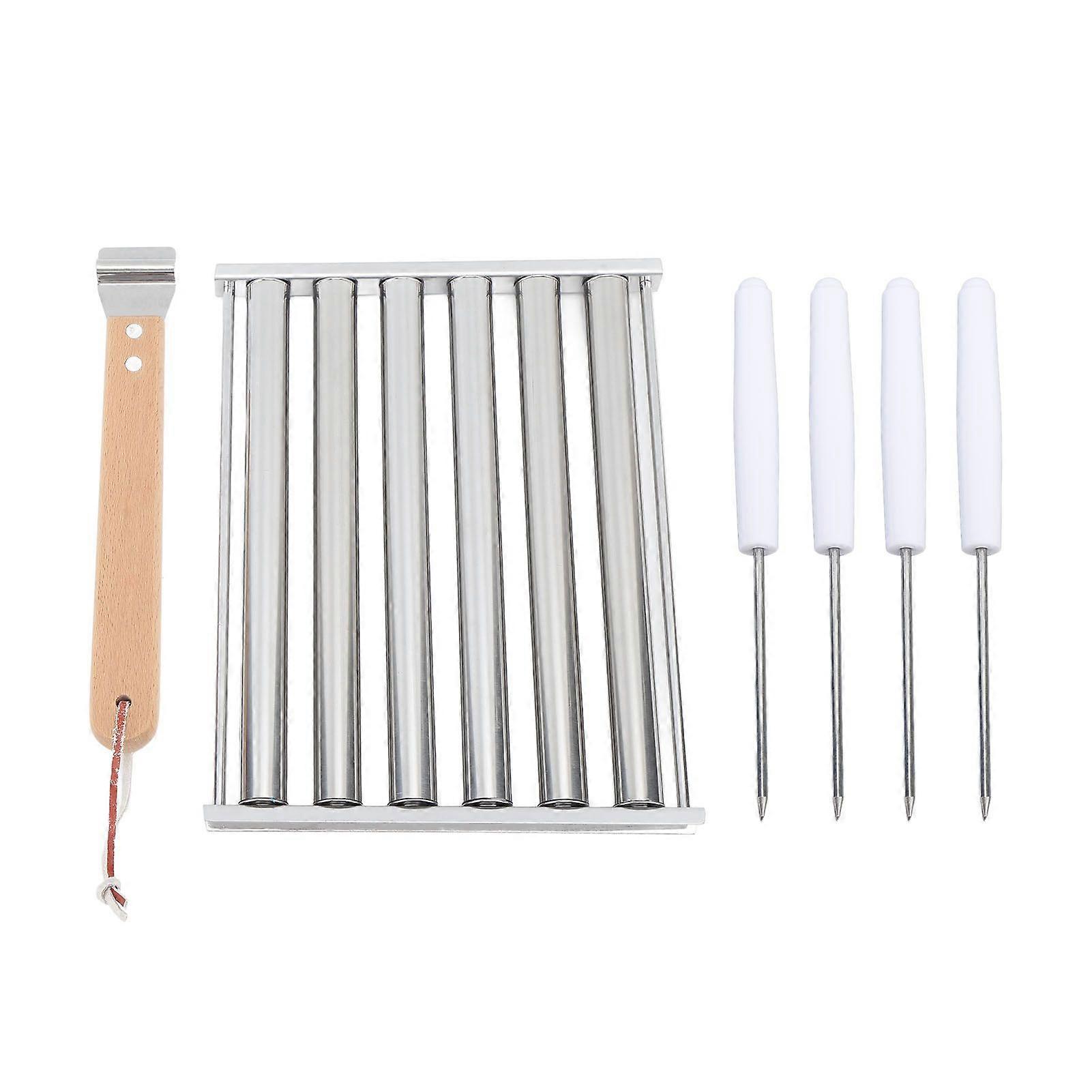 Detachable Stainless Steel Hot Dog Sausage Roller Rack Steamer With Extra Long Wood Handle 4 Skewers 6 Stick Design BBQ Tools S
