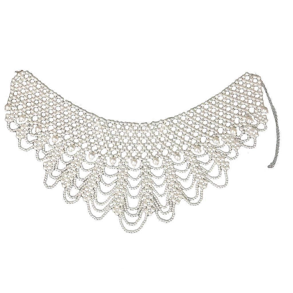 Detachable Blouse Fake Collar Elegant Faux Pearl Beaded False Collars Choker NecklaceSummer Cloth Accessory Beige