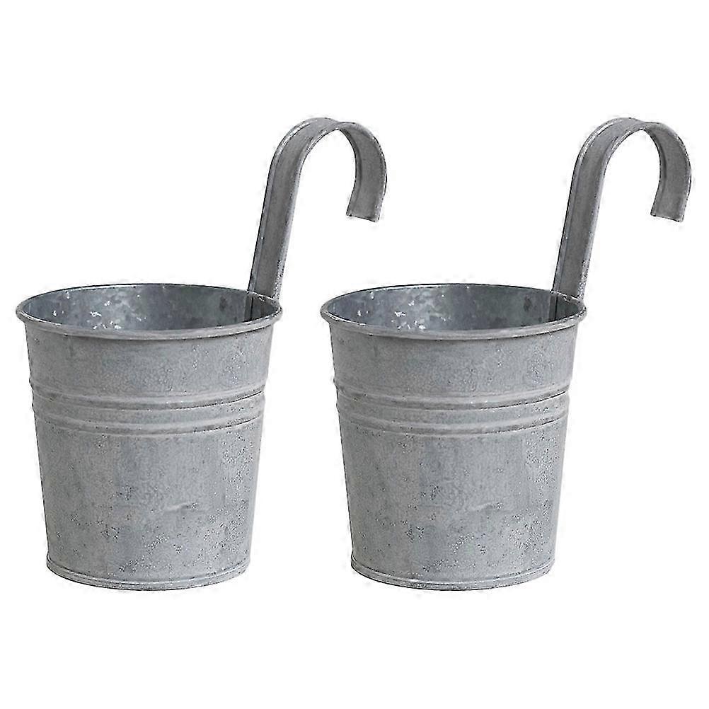 2pcs Retro Hanging Flowerpots with Detachable Hook, Grey, 16.5x10cm