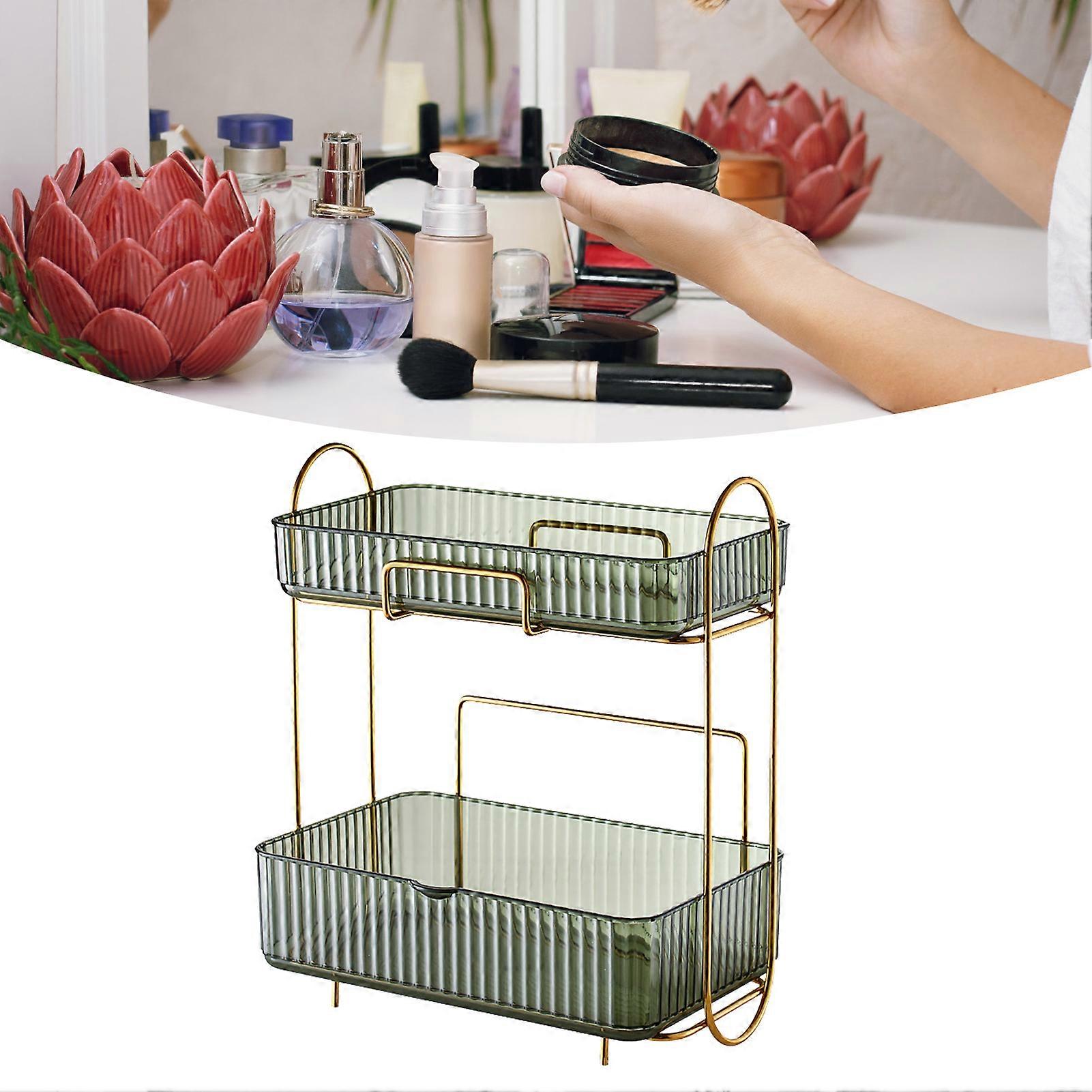 2-Layer Bathroom Counter Organizer with Removable Box, Large Capacity, Luxury Green, 1200g
