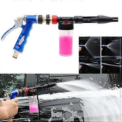 Features:2 In 1 Function - Special adjustable foam lance, with 2 in 1 function, it can support to spray foam or spray water with different spray angels to clean the foam.High Capacity -Bottle's capacity of car cleaning gun sprayer can reach up to 100 ml, so it can work with the most garden hose and car for car washing, window washing.Quick Connector - Car washing gun sprayer's handgrip is with quick connector, easy to install.Thick & Clinging Foam - Foam generating wand of wash foam gun creates a thick, clinging foam, so as to reach high cleanliness.Detachable Design - Snow foam lance has detachable design, easy to carry and storage.Specifications:Material: ABS plastic, copperQuantity: 1 SetBottle Capacity: 100mlWater Pipe Adapter Size: 1/2"Usage Method:1. Infuse right amount of washing fluid. (Capacity: 100ml.)2. Please assemble the hose kit to the water pipe of the tap and foam gun rightly.3. Adjust the rotary knob according to the ratio.4. Open the water faucet of the tap.5. Hold the controlling pole of foam gun with nozzle aiming at the object and spray foam.6. Lay it for a proper time and the offload gun and wash it.7. Remove the dirty water with rubber cleaner and then wipe it with a clean rag or scrap cotton yarn.8. You must hold the controlling pole of gun closely and control the moisture after close the tap water faucet.Package Included:1 x Foam Water Gun Sprayer