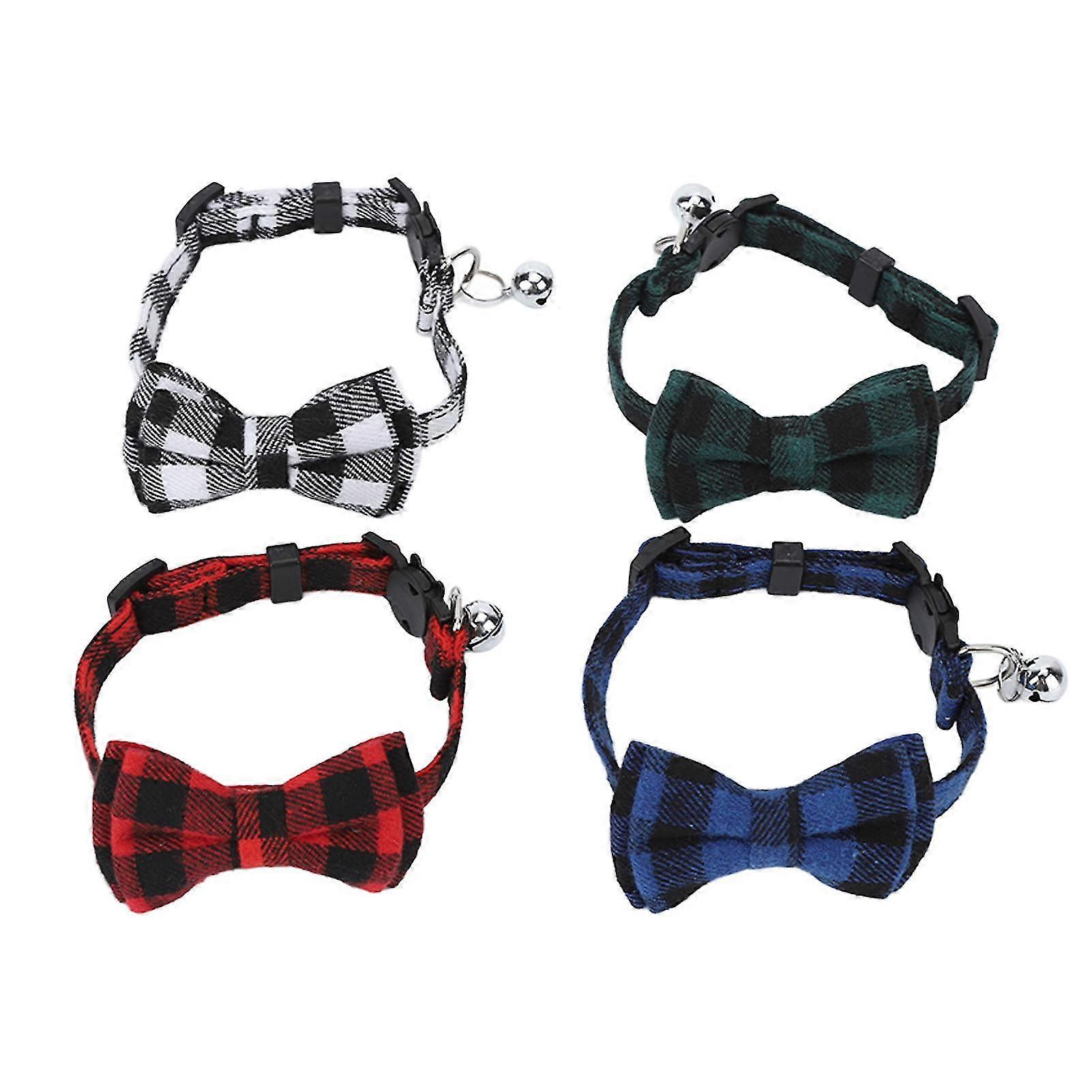 Plaid Dog Bow Tie with Detachable Safety Buckle - 4pcs Set for Small Dogs and Cats YX