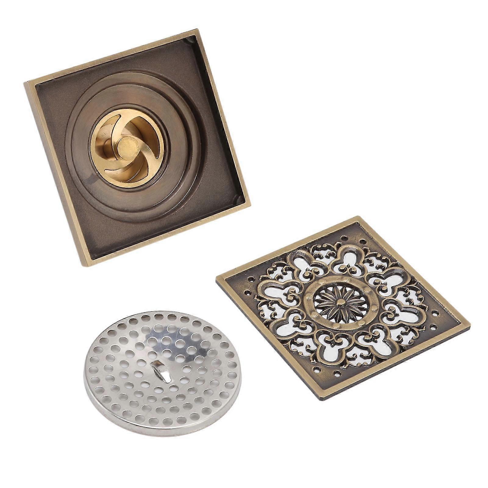 Square Shower Drain with Removable Grate, Antique Brass Floor Drain, High-Density Filter, Durable