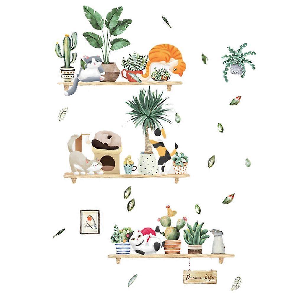 Removable Cat & Potted Plant Wall Stickers Decals Self Adhesive, Tear Resistant, Easy Apply & Remove Wall Art for Bedroom, Living Room, Home Decor
