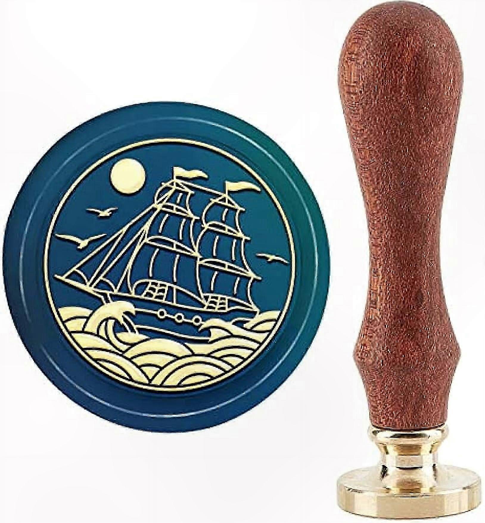 Vintage Sailboat Wax Seal Stamp with Removable Brass Head and Wood Handle for Crafting, Invitations, and Decorative Projects