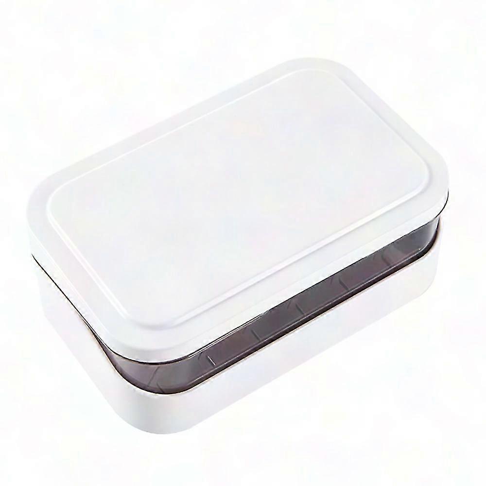 Portable Soap Box with Removable Lid & Drip Tray, Travel Soap Dish for Bathroom, White Rectangular Soap Holder 8x13.2x5cm