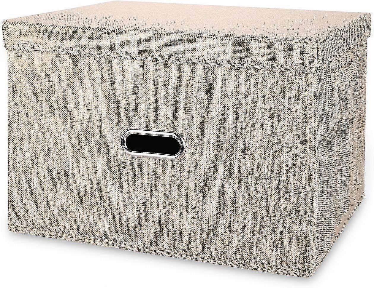 Linen Fabric Collapsible Storage Bins With Removable Lids And Handles, Washable Storage Box Containers Baskets Cube With Cover (khaki, Small)