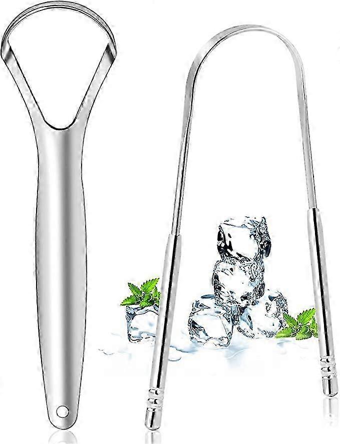 2Pcs Cleaner Stainless Steel Tongue Scraper Tongue Brush for Mouth Cleaning