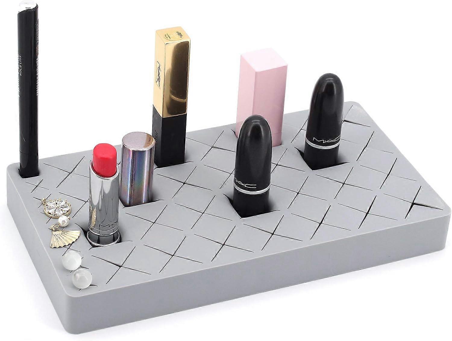 Lipstick Holder, Makeup Storage Solution, 36 Compartments Silicone Lipstick Display Stand, Creative Desktop Storage (Gray)