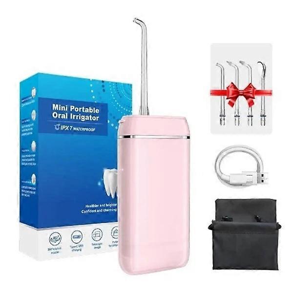 Oral Irrigator - 3 Modes Dental Water Jet 140 ml Tank 4 Nozzles, Pink