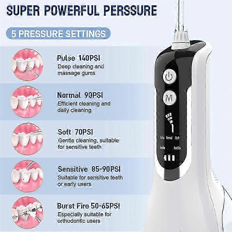 Oral Irrigator Usb Rechargeable Portable Dental Water Jet 330ml Water Tank Waterproof Teeth Cleaner White
