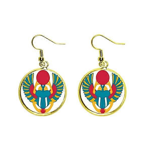 Ancient Egypt Scarab Pattern Ear Dangle Golden Drop Earring Jewelry Woman