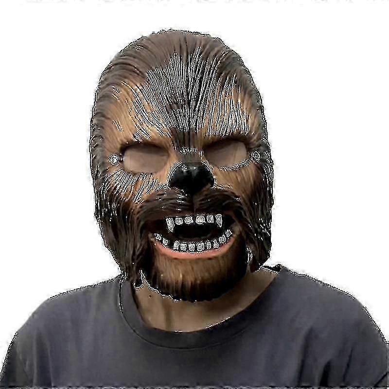 Halloween Chewbacca Mask with Movable Jaw, Full Head Wookiee Cosplay Costume for Movie Alien Costume Headgear