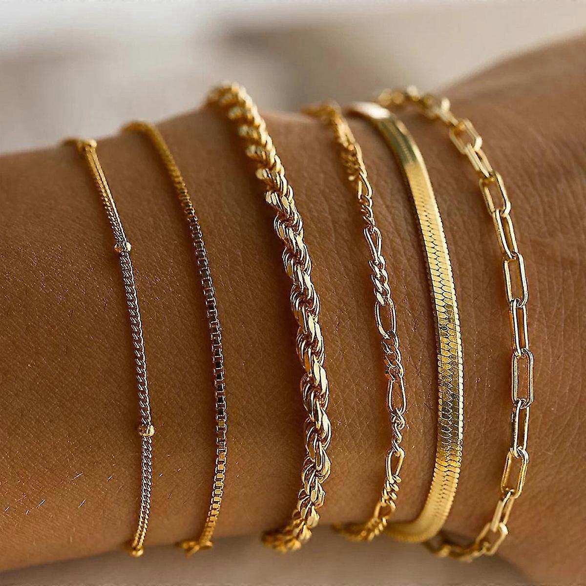 Dainty Gold Chain Bracelets Set for Women 14K Real Gold Plated Link Chain Bracelets for Women