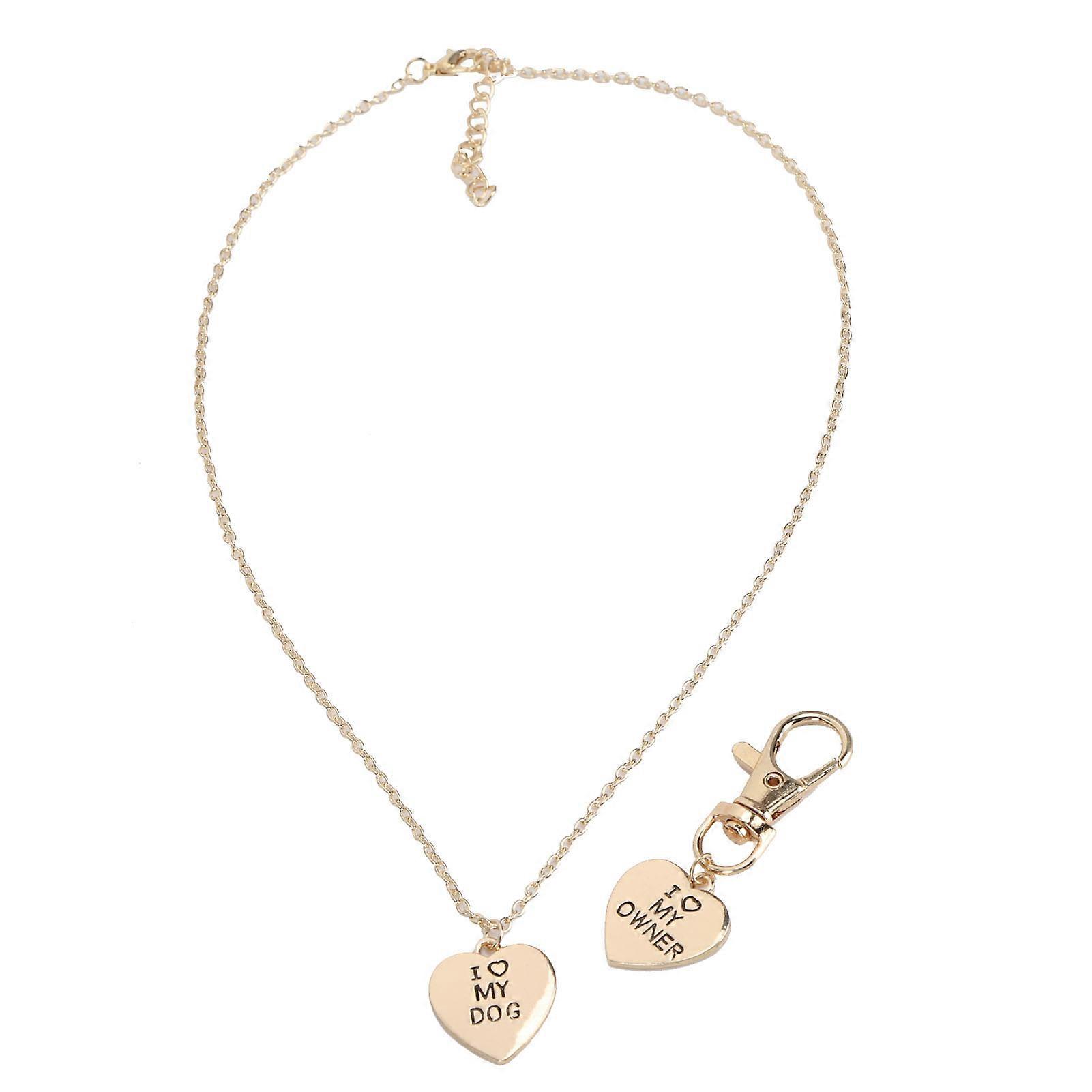 Alloy Owner and Pet Pair Dog Bone 2 Splicing Necklace Dog Tag Chain 2 Split PendantsLove Tag Owner Necklace and Pet Pendant Set