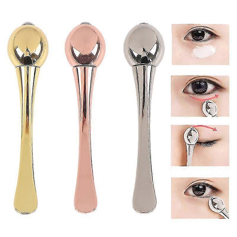 Alloy Metal Eye Cream Applicator Cosmetic Spatulas Roller Massager Stick Spoon,Silver