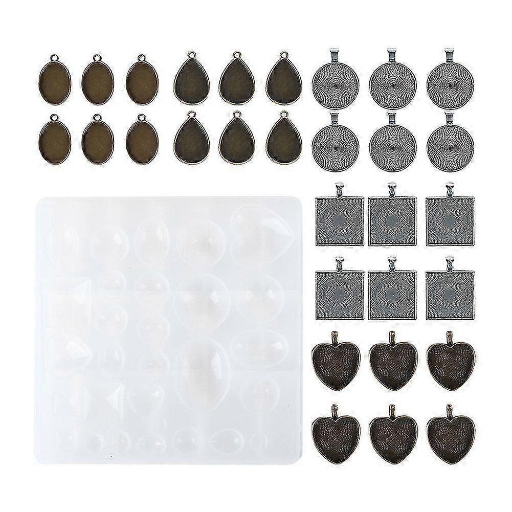 Alloy Round Oval Pendant Base Tray Silicone Mold Jewelry DIY Tool Set BH201863