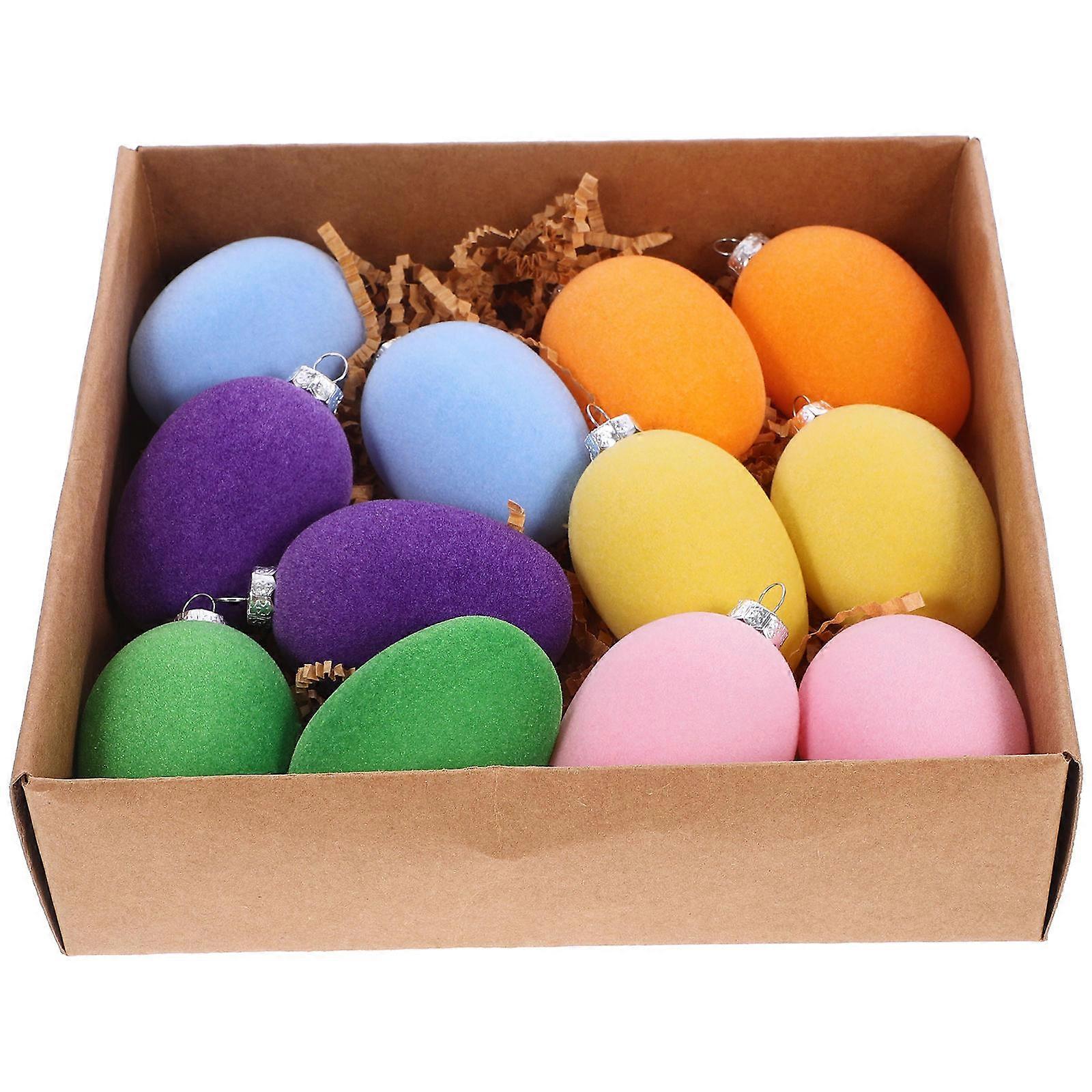 Hanging Pendant Ornament Easter Themed Decor Assorted Color Plastic Flocking For Spring Hanging 12Pcs