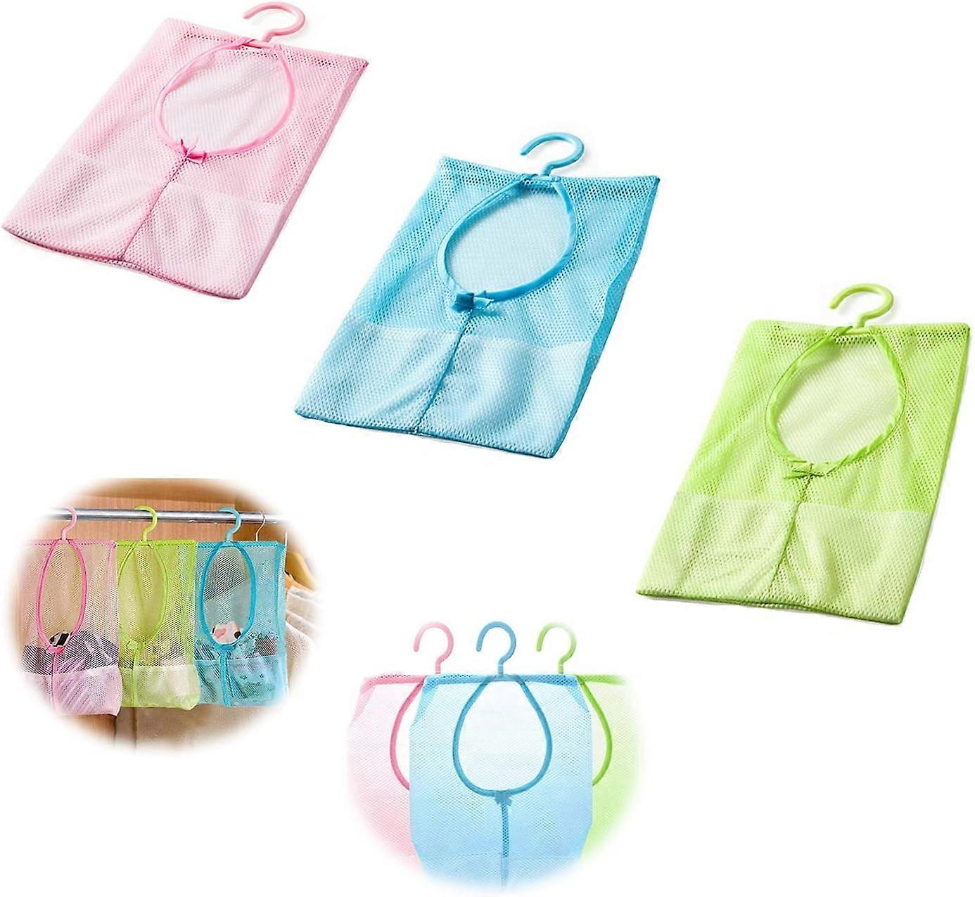 Foldable: Package includes 3 mesh storage bags, colors are green, blue and pink, hang on a hook or closet rod or can be folded flat for easy storage. Helps keep your bedroom tidy.
