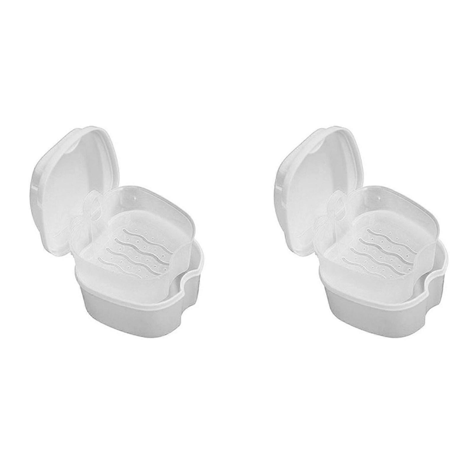 2pcs Denture Boxes with Hanging Inner Net and Dust-Proof Lid - Drain Design for Hygienic Storage - Mini Style for Oral Care on the Go - Ideal Travel A