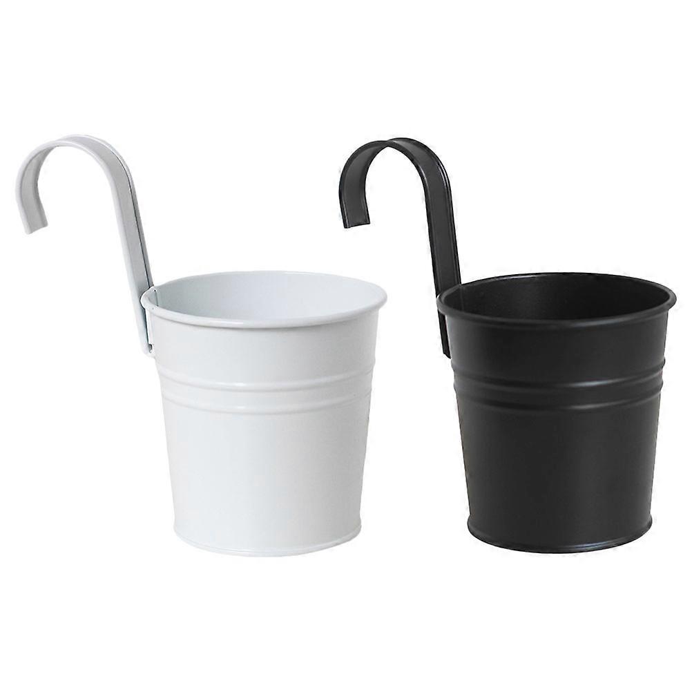 Hanging Flowerpot Planting Pots Wall Hung Flowerpot Use Round Shape Simple Design Black 2Pcs