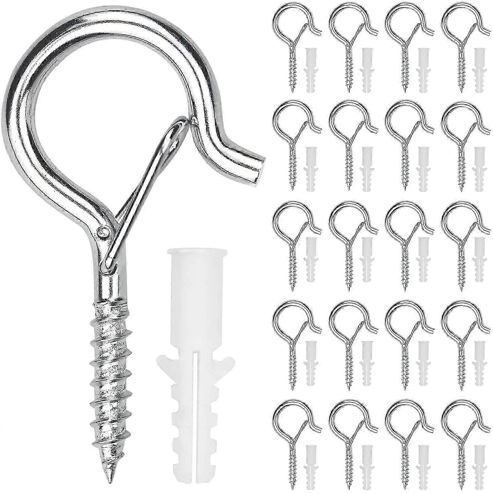 20pcs Heavy Duty Ceiling Hooks with Safety Buckle for Hanging Plants, Lights, Baskets - Screw-on Wall & Cabinet Hooks